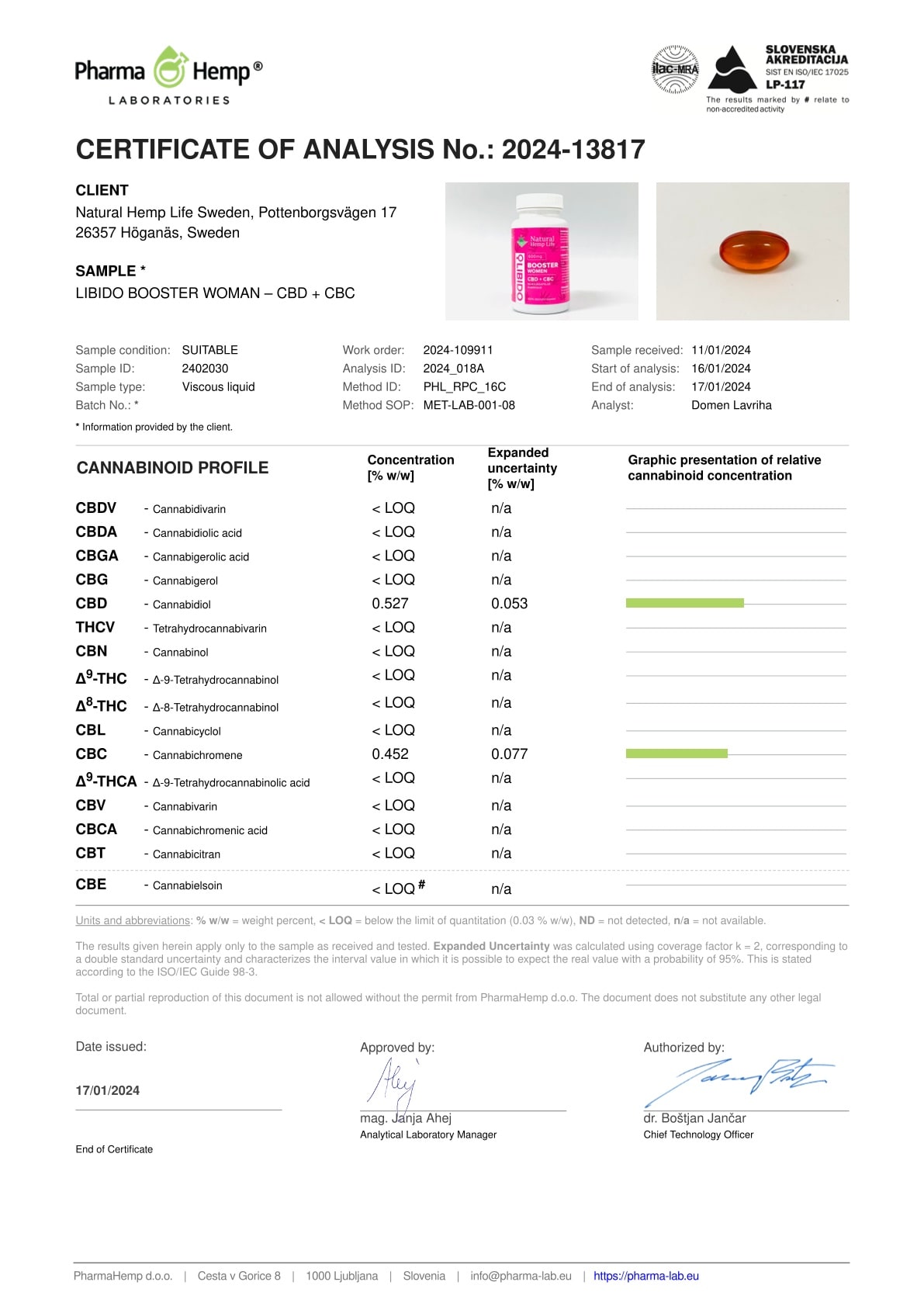 - CBC fra industrihamp – 10 mg: Kan ha smertelindrende og betennelsesdempende egenskaper, spesielt nyttig ved menstruasjonssmerter. Bidrar også til å opprettholde balansen i slimhinnene.